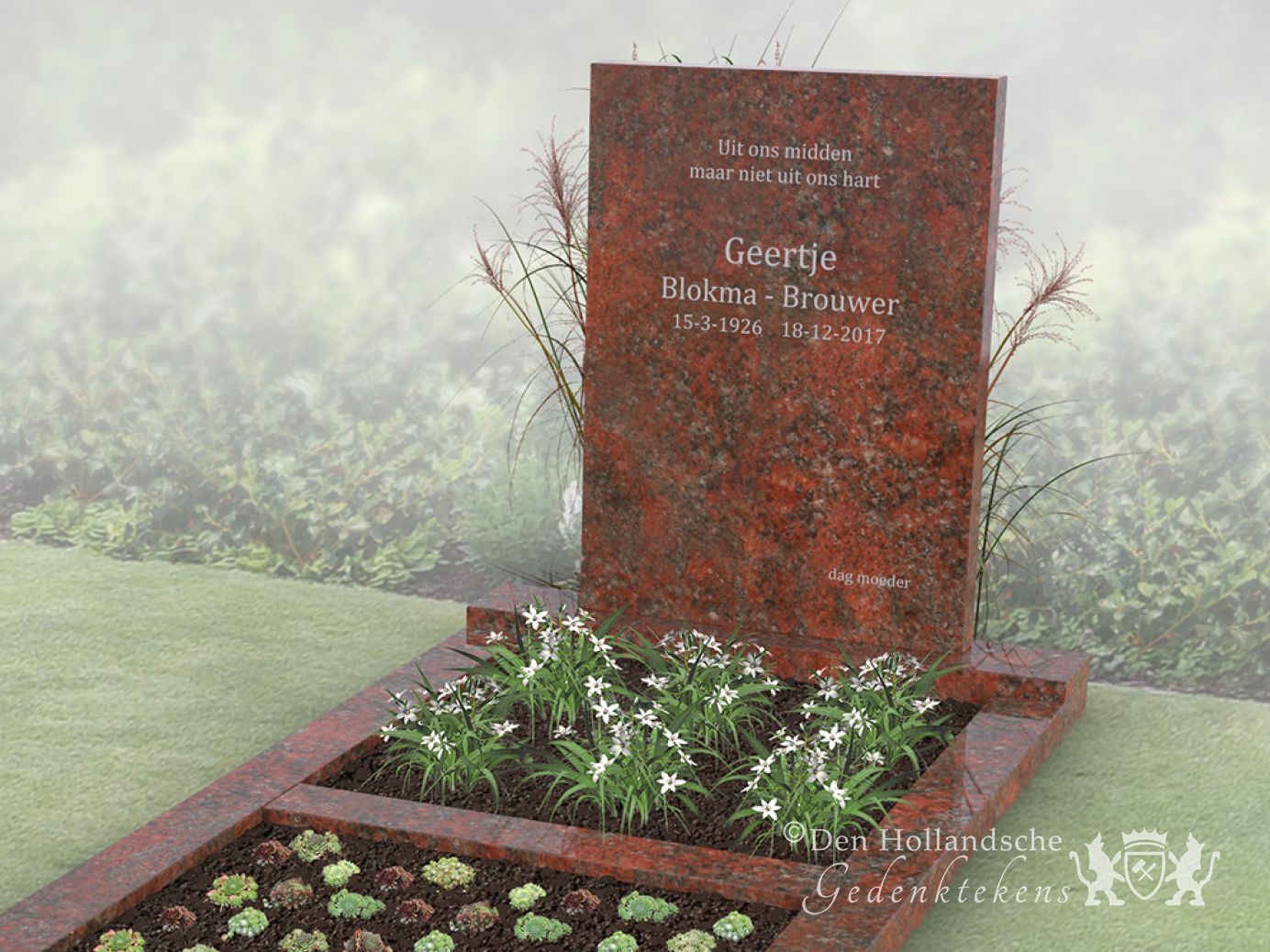 Enkele grafmonumenten of grafstenen zoals deze zijn ontworpen voor een enkel breed graf. Hoewel deze grafmonumenten enkel breed zijn, kan het graf wel 2 of 3 diep zijn en dus plaats bieden aan meerdere personen. Afhankelijk van de ruimte voor de belett... lees meer >