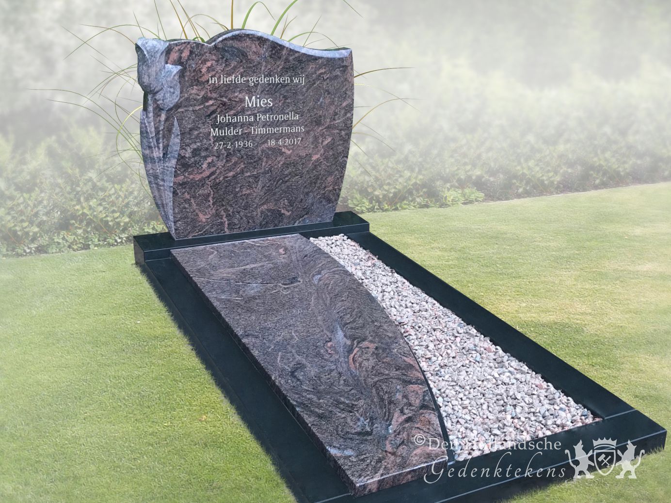 Enkele grafsteen - met vloerEnkele grafmonumenten of grafstenen zoals deze zijn ontworpen voor een enkel breed graf. Hoewel deze grafmonumenten enkel breed zijn, kan het graf wel 2 of 3 diep zijn en dus plaats bieden aan meerdere personen. Afhankelijk van de ruimte voor de belettering kan een enkel grafmonument dus prima plaats bieden aan meerdere namen en opschriften.