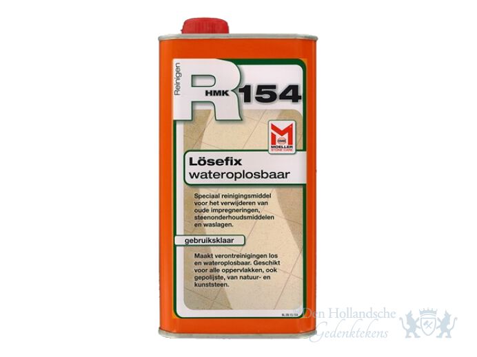 Laat het natuursteen afkoelen tot zijn natuurlijke temperatuur. Verwerk R154 niet bij een buitentemperatuur onder de 5C of boven de 20C. Gebruik R154 niet bij direct zonlicht. R154 in voldoende hoeveelheid onverdund op het droge oppervlak aanbrengen na ca. 10 minuten met een borstel (geen nylon) inwrijven en het geheel goed met ruim helder water afwassen, dit water vermengen met wat R155 Grondreiniger. Als de vervuiling niet geheel is verdwenen de behandeling herhalen. Pas op materialen als rubber en kunststof, deze kunnen worden aangetast. Draag altijd veilige rubberen schoonmaakhandschoenen bij het verwerken van dit product.