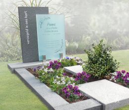 Grafkunst is er in vele vormen. Van een klein ornament als decoratie tot een compleet grafmonument dat als een kunstwerk is ontworpen. We laten u laten dat gedenktekens ook vanuit een design- of kunstenaars oogpunt ontworpen kunnen worden en dat veelal een bepaalde symboliek hieraan ten grondslag ligt. Wij werken samen met verschillende kunstenaars die in ieder gewenst materiaal een vorm van kunst voor u kunnen ontwerpen.Enkele grafsteen - met vloer
