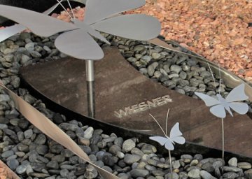 Op een gedenkteken met een klassiekere uitstraling kan de vlinder als decoratie geplaatst worden en eventueel voorzien worden van een persoonlijke tekst of spreuk.