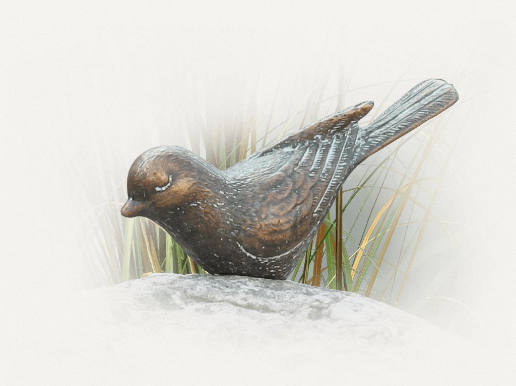 Een of meer vogeltjes gemonteerd op een grafmonument maken het geheel natuurlijk en voorzien het monument van een kleine persoonlijke tint.