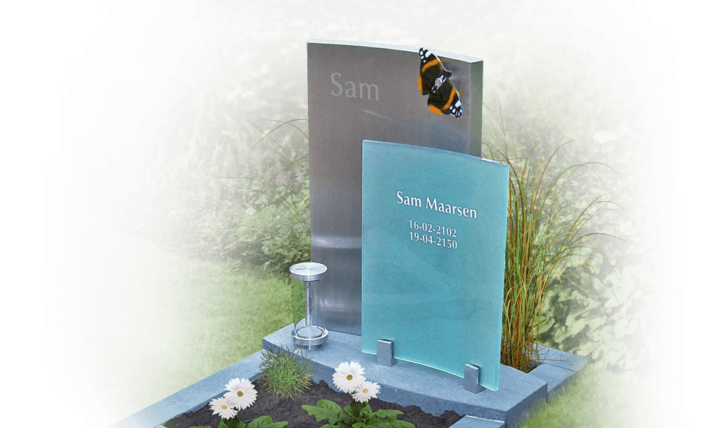 Een van de voordelen van glas en RVS is de hoge duurzaamheid. De grafsteen zal er nog tientallen jaren hetzelfde uitzien.