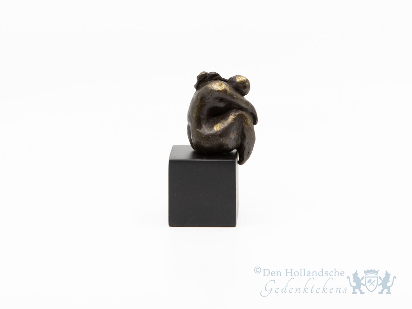 Het urn beeldje Verdrietige vrouw is een urn en kunstobject in één. Het beeldje is gemaakt van een tin legering en daarna verbronsd.
