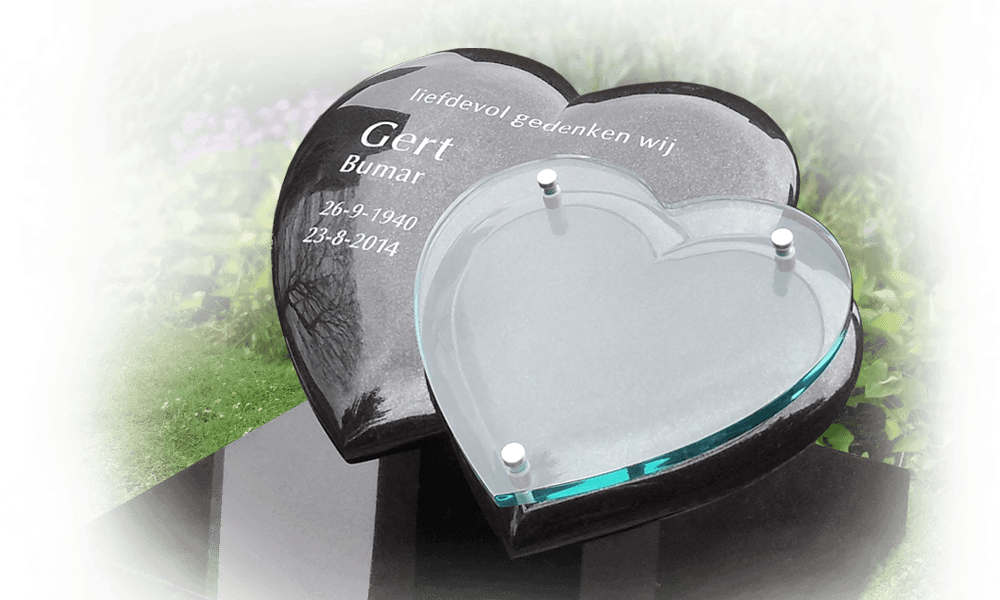 Het monument wordt door onze eigen medewerkers geplaatst op de begraafplaats. Samen met u ontwerpen we een persoonlijk gedenkteken en gebruiken daarbij de glastechnieken die het beste bij uw wensen passen.