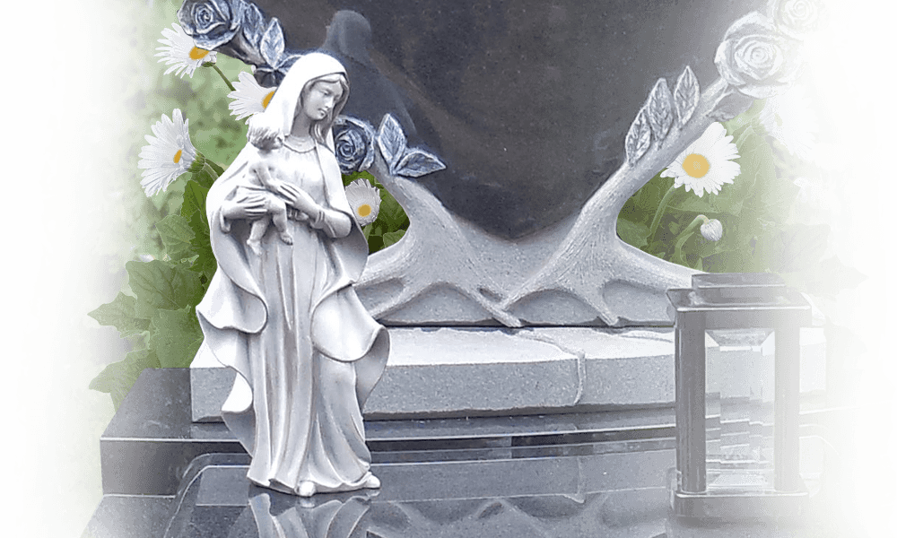 Een beeld van een engel of heilige kan zo mooi en compleet zijn dat het op zichzelf al toegepast kan worden als grafmonument.