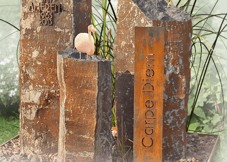 Het gedenkteken is in het echt te bekijken in onze inspiratietuin.