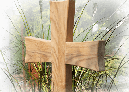 Het meest gebruikelijk is het kruisje voor de aanheftekst te plaatsen. Maar ook op het voetstuk kan een kruis heel mooi tot zijn recht komen.